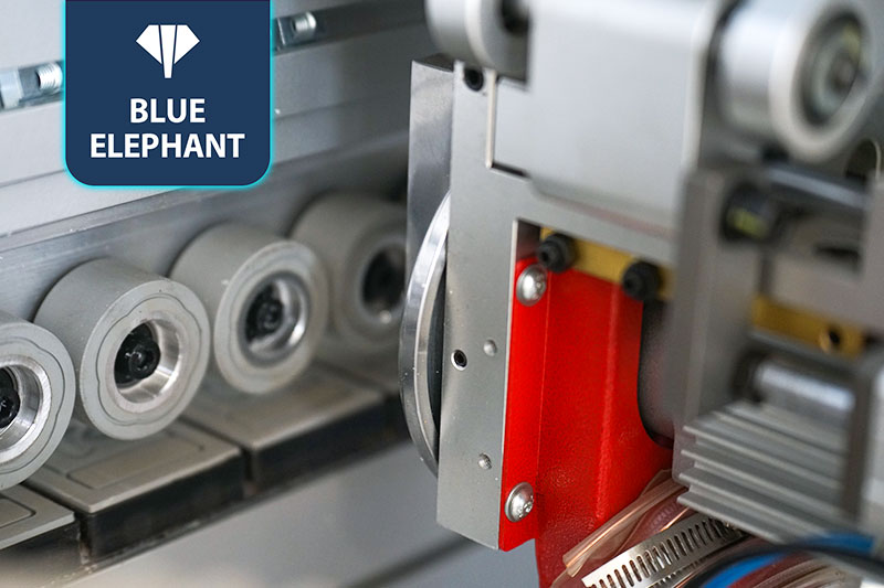 E-80全自動封邊機功能:前分離-預銑-上膠鍋+快速溶膠六輪壓貼1-下膠鍋+六輪壓貼2-快速齊頭-氣動精修1-氣動精修2-四頭跟蹤倒角-氣動刮邊1-氣動刮邊2-斷絲+平刮-后清洗-拋光1-拋光2
