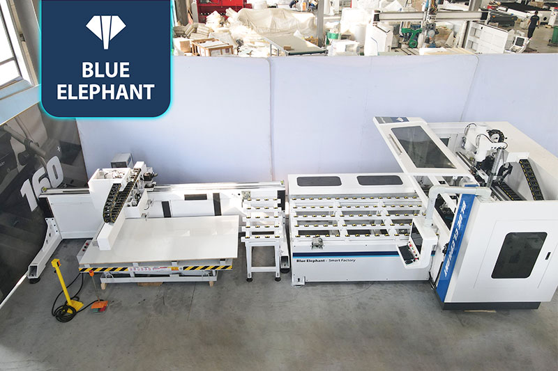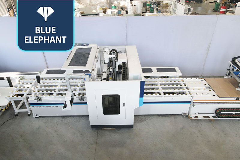 生產(chǎn)工序優(yōu)化,減少人工,提升效率,ET7貼標(biāo)鉆切一體機(jī),貼標(biāo)、打孔、開料一次完成,再配合封邊機(jī)封邊打孔,省掉傳統(tǒng)生產(chǎn)線六面鉆或者側(cè)孔機(jī)打孔的流程。