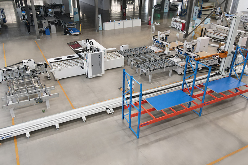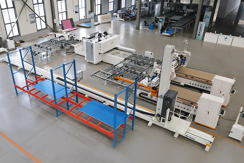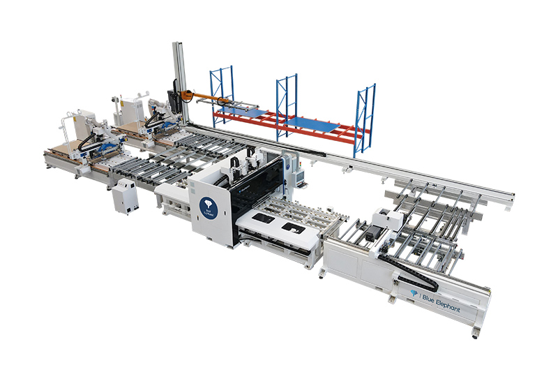 一拖二貼標(biāo)鉆切生產(chǎn)線增加智能料倉(cāng),實(shí)現(xiàn)自動(dòng)抓料、智能配板、柔性生產(chǎn)。