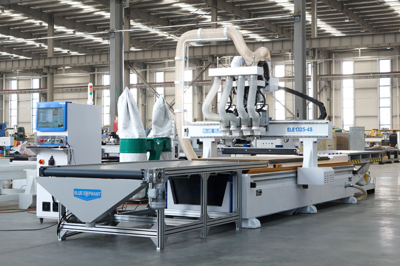 新款四工序開料機(jī)帶自動上下料平臺,新式大方管床身,加工穩(wěn)定性好,長期加工不變形;