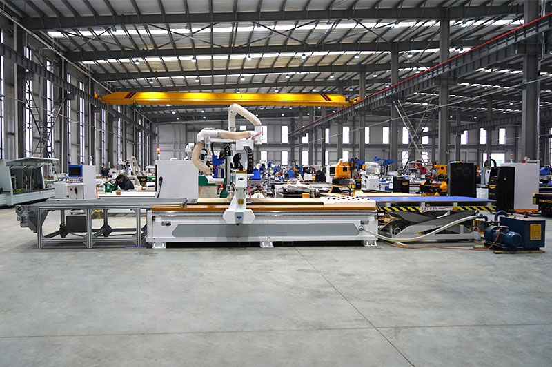 直排12把刀刀庫在龍門下邊,配自動上料平臺和自動下料平臺,節(jié)省換刀及上下料時(shí)間,生產(chǎn)效率高。