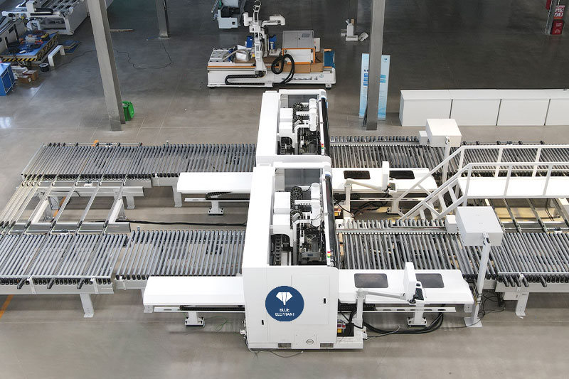 六面鉆雙機(jī)連線由兩臺(tái)數(shù)控六面鉆、定位機(jī)構(gòu)、高清讀碼器、自動(dòng)輸送線及智能化控制系統(tǒng)組成,可與封邊機(jī)、開料設(shè)備組成自動(dòng)化生產(chǎn)線。