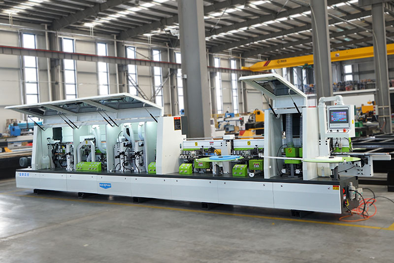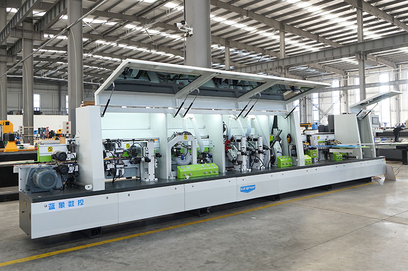 主要功能:預(yù)銑-涂膠貼邊1-六輪壓貼-烤燈1-涂膠貼邊2-六輪壓貼-烤燈2-前后齊頭-精修1-精修2-跟蹤修邊-氣動刮邊-平刮-氣動拋光1-氣動拋光2-屏幕一鍵控制前后清洗。